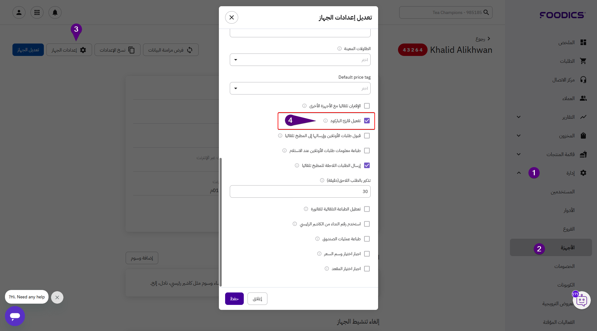 - فعّل خيار السماح بقارئ الباركود (Enable Barcode Scanners)