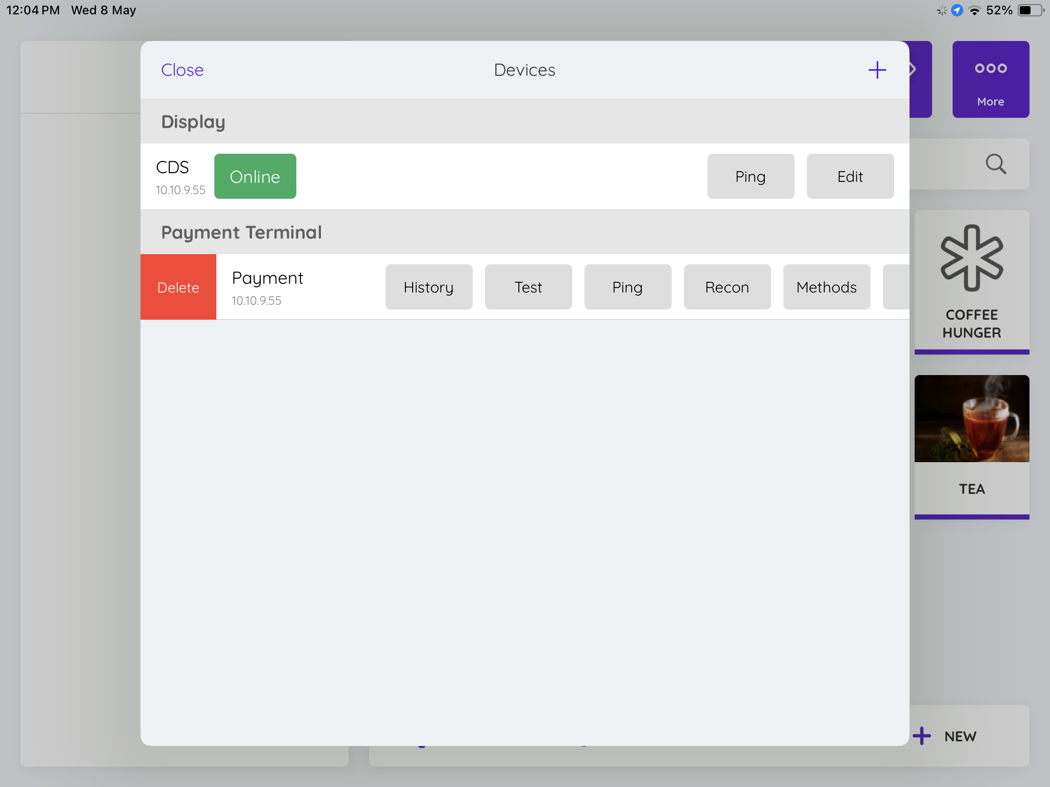 3. قم بإزالة جهاز الدفع في تطبيق الكاشير بالذهاب إلى "الرئيسية" > "الأجهزة". اسحب لحذفها ثم أضفها مرة أخرى.