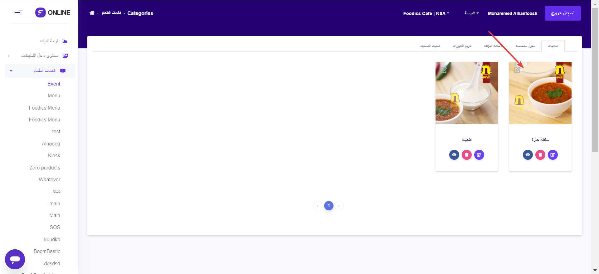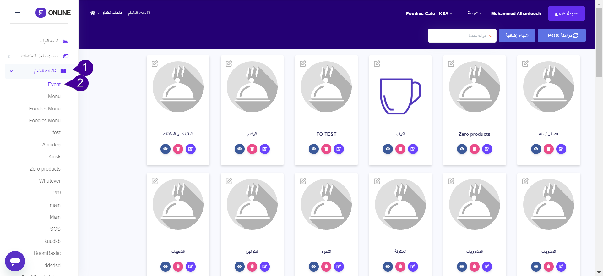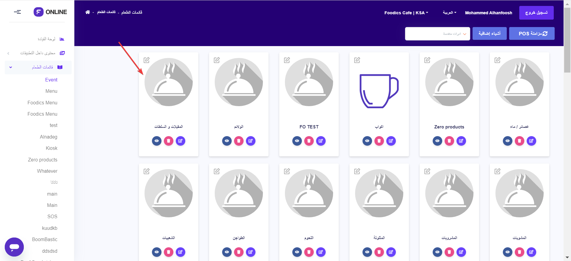 انتقل إلى لوحة تحكم فودكس اونلاين واذهب إلى قائمة الطعام - اختر قائمتك المحددة.