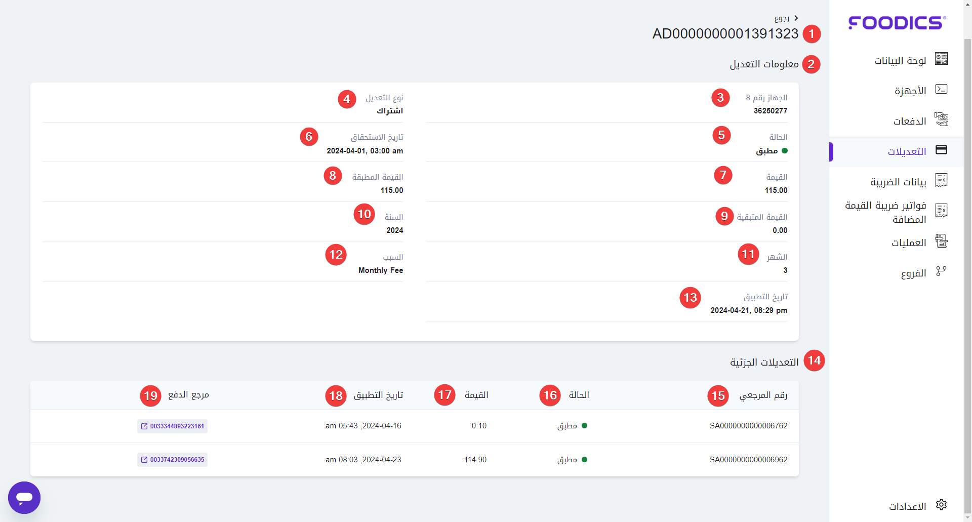 - الرقم المرجعي: الرقم المتسلسل المرتبط بالتعديل.