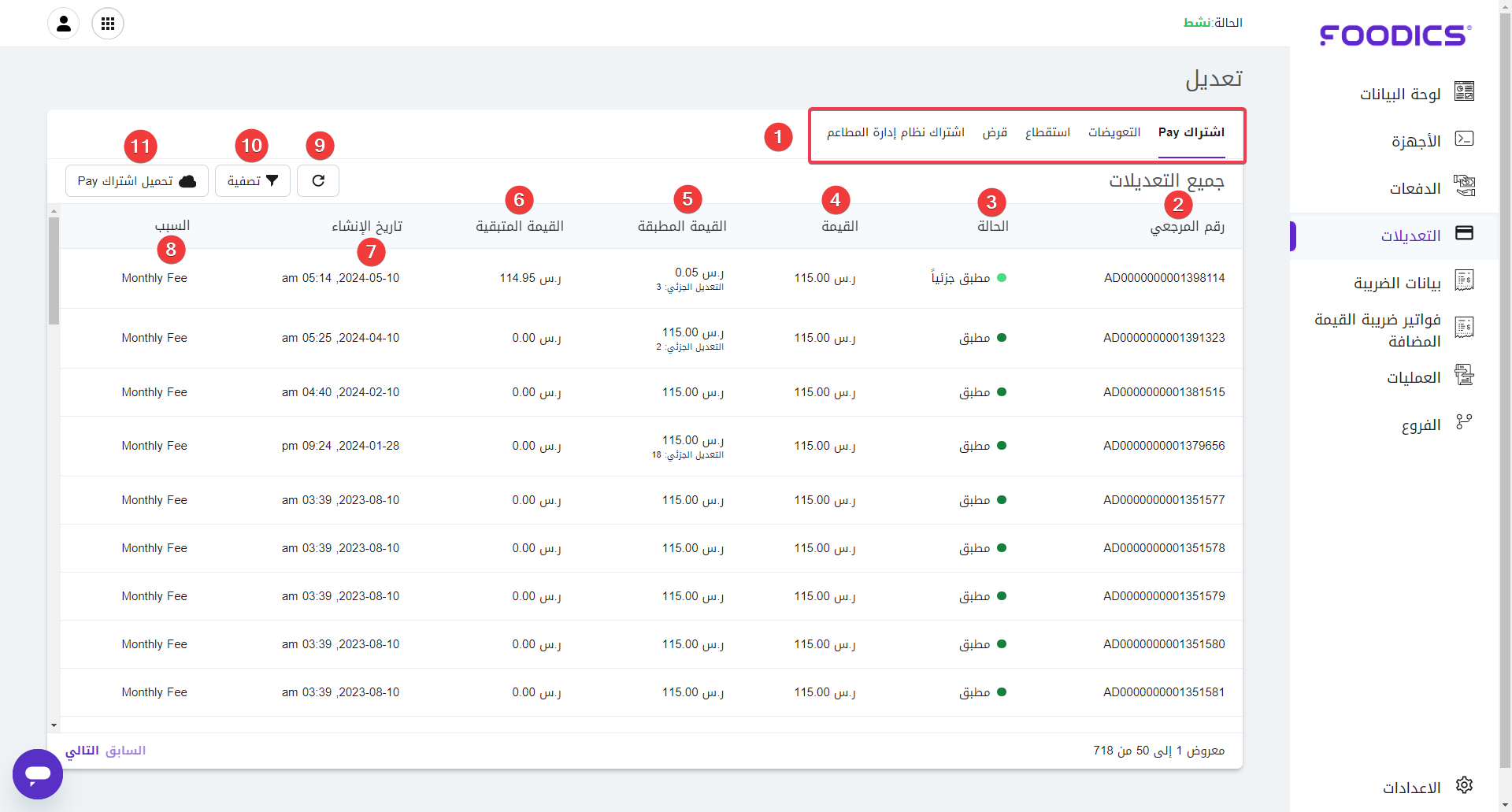 مرجع الدفع: الرقم المرجعي للدفعة المرتبطة بالتعديل الفرعي الذي تمت فيه.