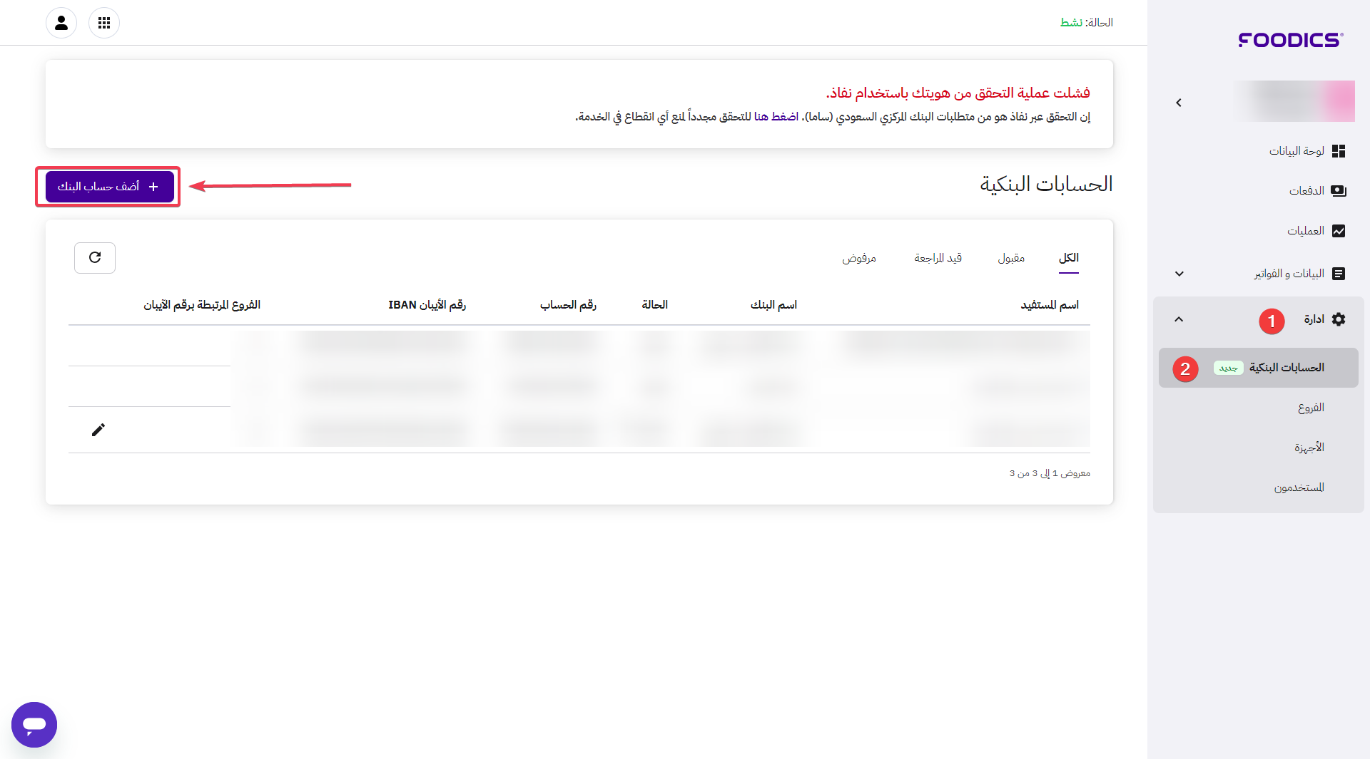 هذه المقالة ستوضح لك كيفية إضافة حساب بنكي في بوابة فودكس باي، مما يتيح لك إضافة عدة حسابات بنكية لتكون متاحة للاستخدام أو تغييرها عند الحاجة بين الفروع.
