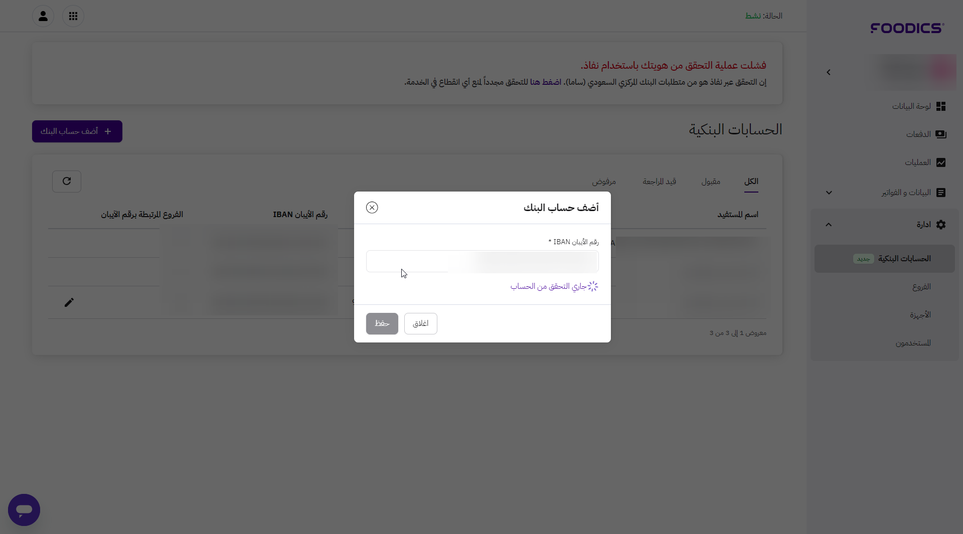بعد الضغط على "حفظ"، ستكون حالة الآيبان "في انتظار المراجعة"، حيث قد يستغرق التحقق من الآيبان ما يصل إلى يومين عمل كحد أقصى.