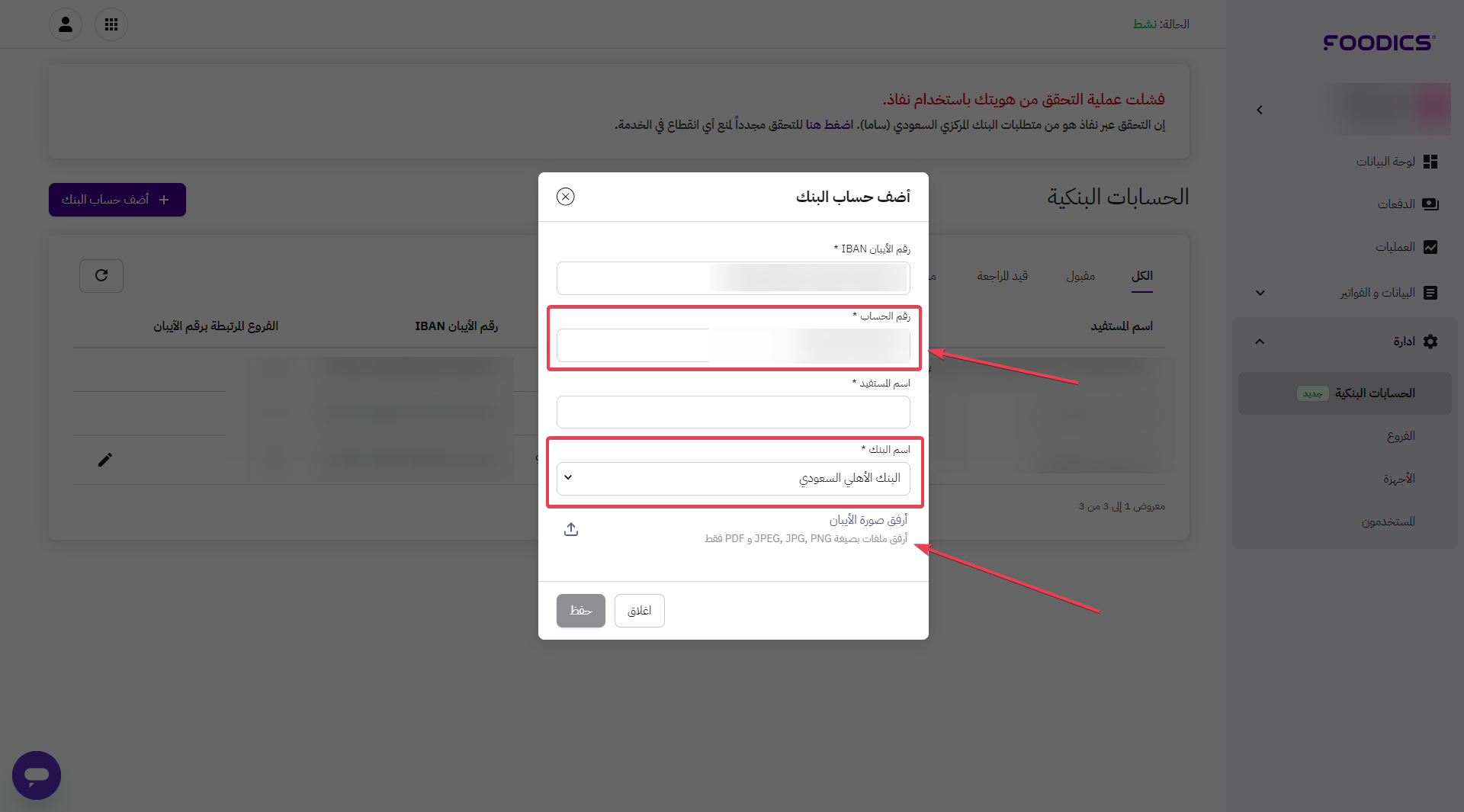 اضافة وتعديل الآيبان في فودكس باي