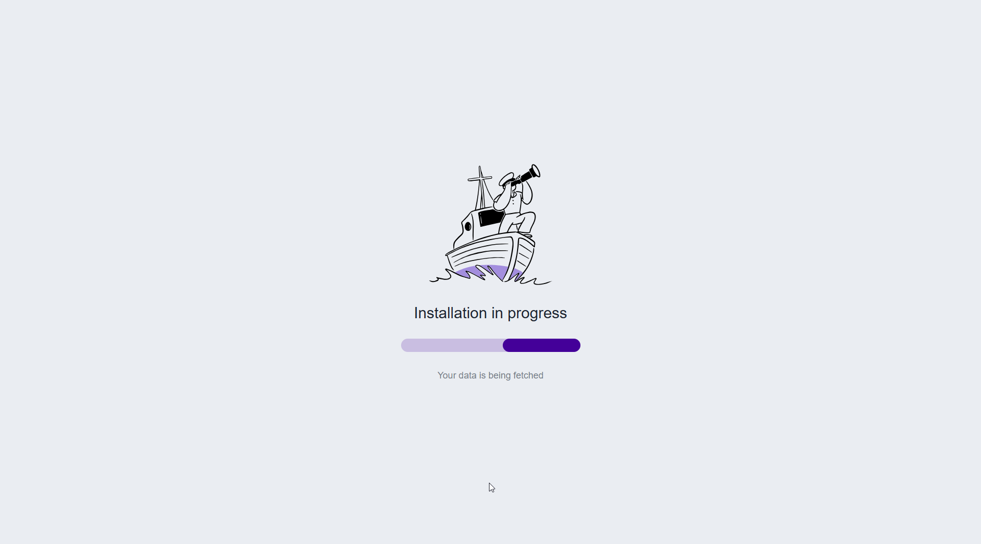 أول مرة تسجّل دخول، بتظهر لك شاشة تثبيت البيانات. العملية ممكن تأخذ شوية وقت حسب حجم البيانات في الكونسول (قد تصل إلى 30 دقيقة).