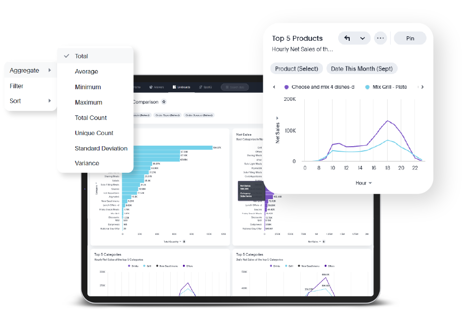 - كما تتيح المنصة للكوادر الإدارية الوصول إلى بيانات تفصيلية قابلة للتنفيذ تدعم الكفاءة في دورة العمل اليومية، مما يساعدهم على متابعة المؤشرات الرئيسية مثل المبيعات والمخزون ورضا العملاء.