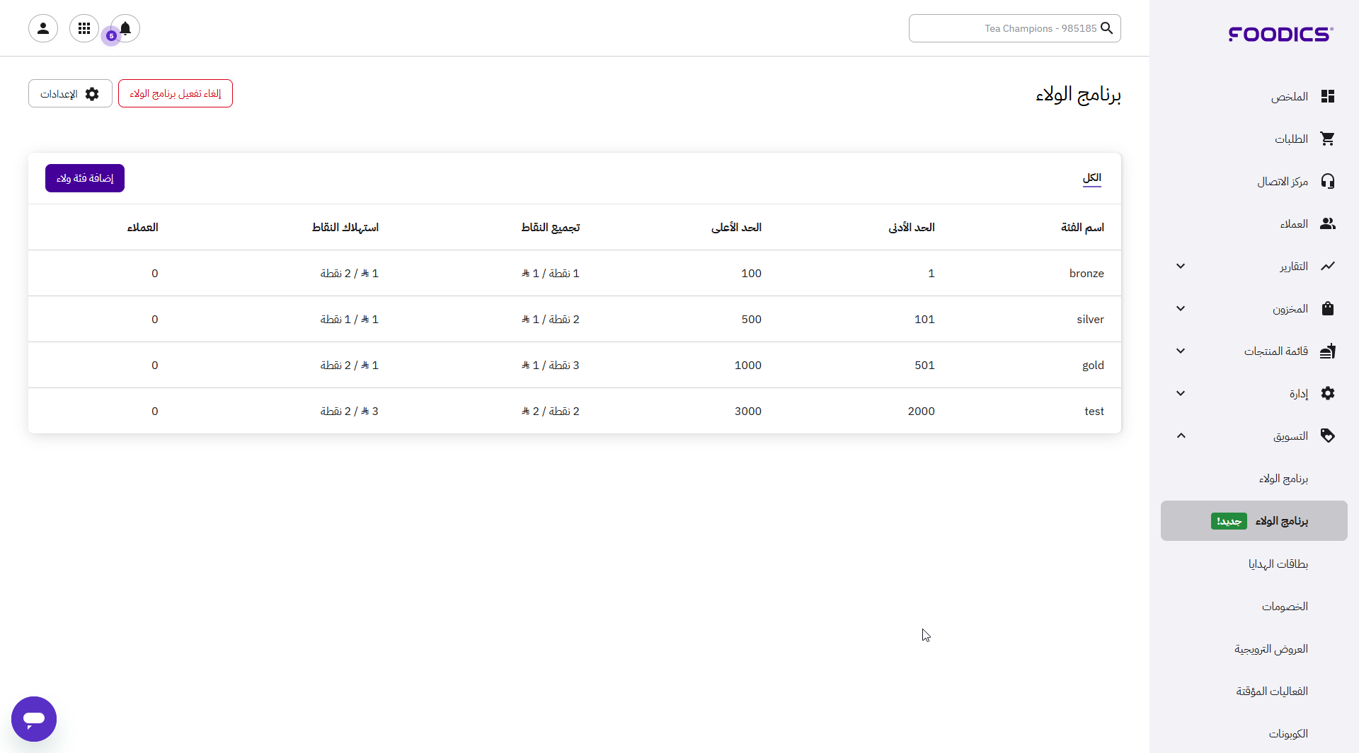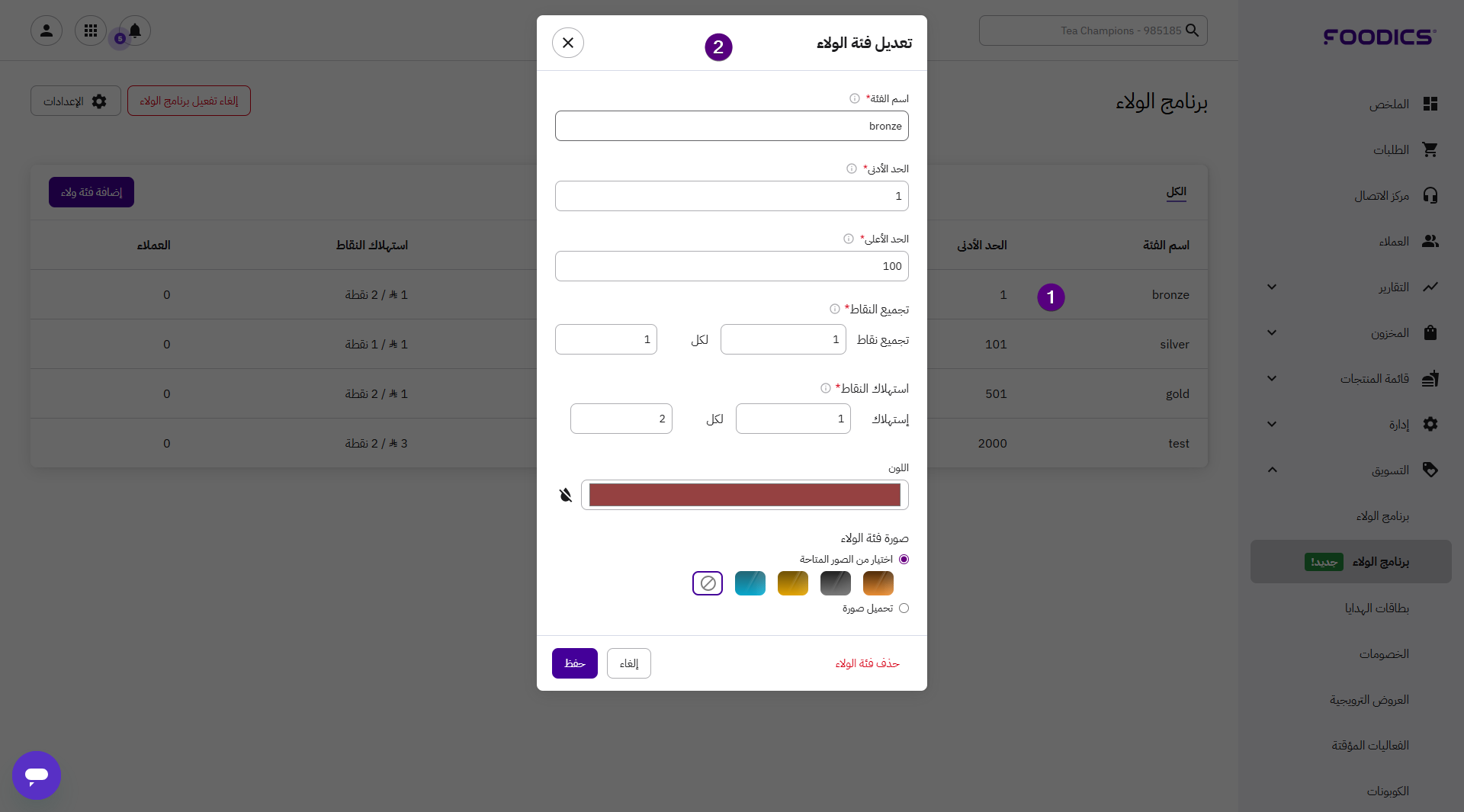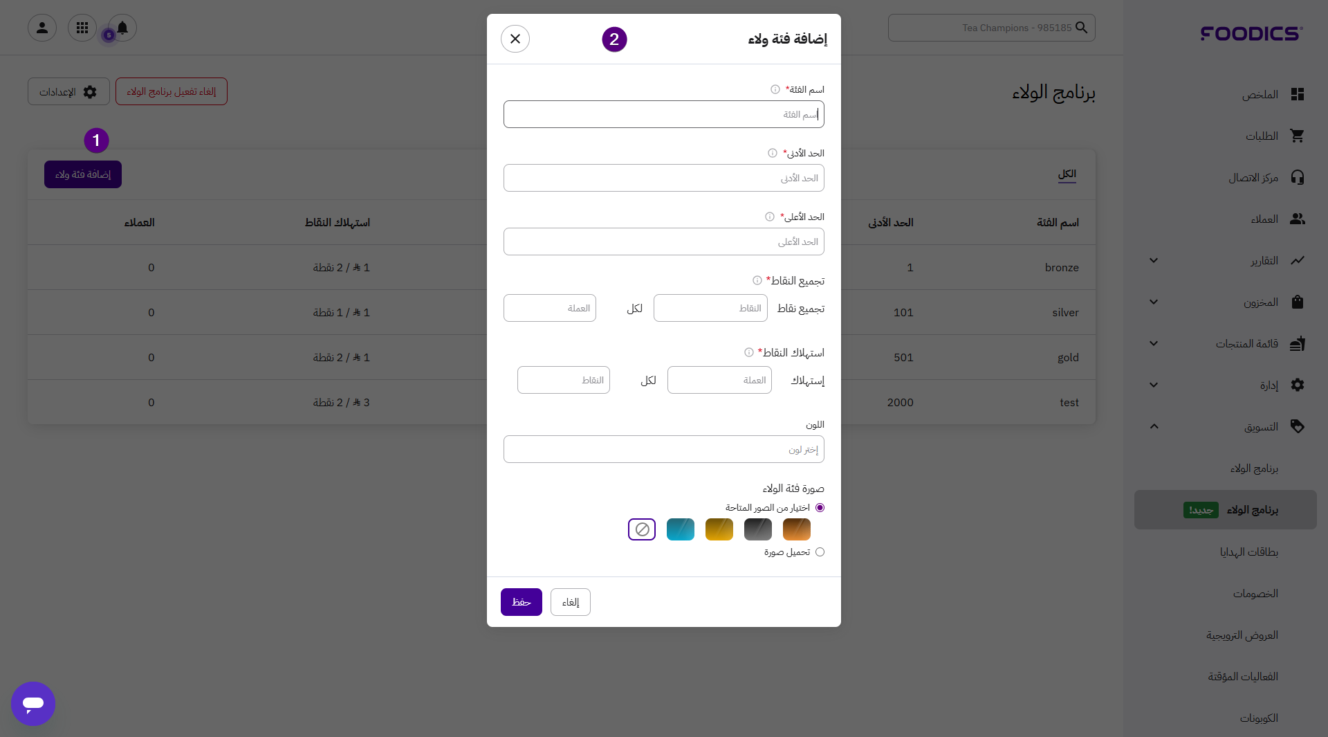 فئة الولاء : الاسم اللي تعطيه لكل فئة الولاء، مثل: برونزي، فضي، ذهبي، بلاتيني، أو مبتدئ، منافس، بطل... إلخ.