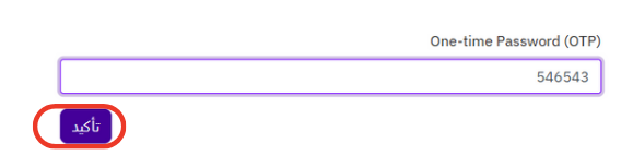 أدخل رمز الـ 6 أرقام (OTP) ثم اضغط تأكيد (Confirm).