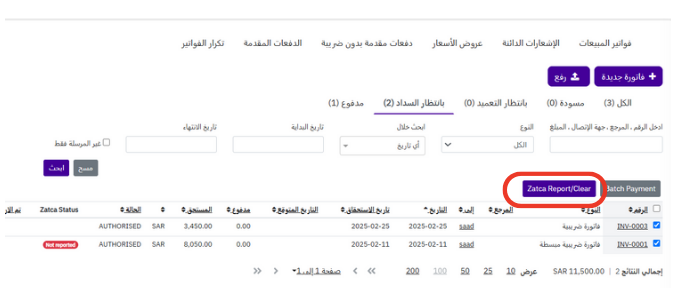 مشاركة الفواتير مع هيئة الزكاة والضريبة والجمارك (ZATCA)