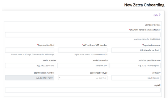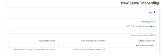 من الإعدادات > إعداد فاتورة (Zatca Onboarding)