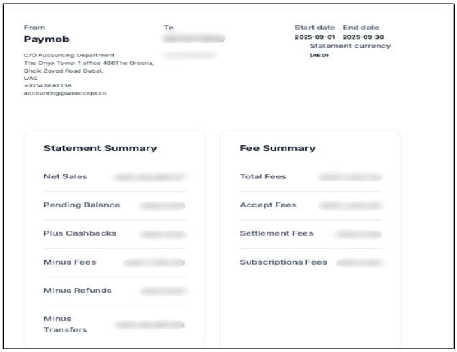 مقالات ذات صلة كيفية استخراج العمليات (Transactions) كشف الحساب لفودكس باي آلية تفعيل تطبيق النادل الإعدادات استخدام الاصطفاف مقالات مرقاة الدليل المتكامل لتقارير الكونسول الدليل المتكامل للقائمة و المنتجات الدليل المتكامل للمخزون الدليل المتكامل لإعدادات الكونسول و النظام كيف يمكن استخراج كشف الحساب؟ 6 أكتوبر، 2025 10:32 محدَّث خدمة كشف الحساب هي خدمة اختيارية (Opt-In) يمكن مشاركتها بشكل شهري بناءً على طلب التاجر، مقابل 15 درهماً إماراتياً. ملخص تقرير رسوم كشف الحساب الذي سيتم مشاركته مع المستخدم: السابق التالي 22768794241180