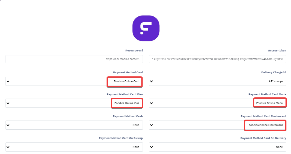 اذهب إلى الإعدادات ← التكامل البرمجي ← Foodics F5 POS