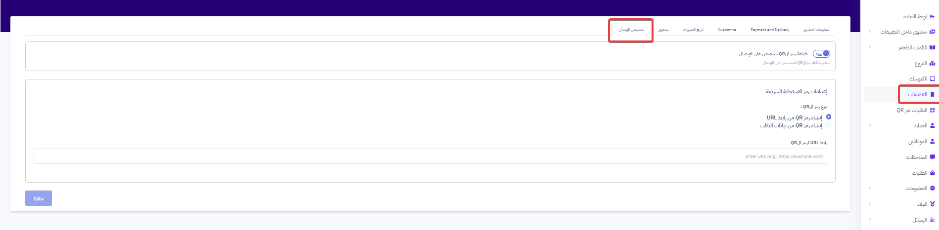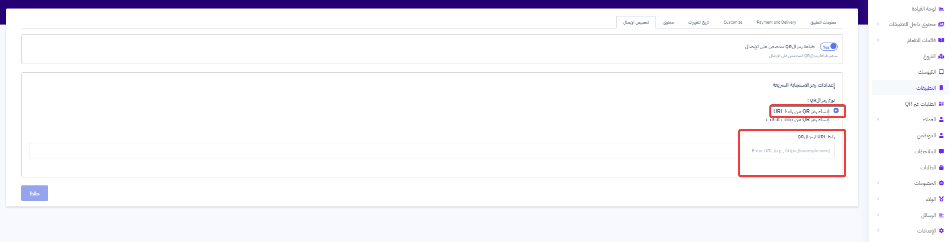إعدادات رمز QR