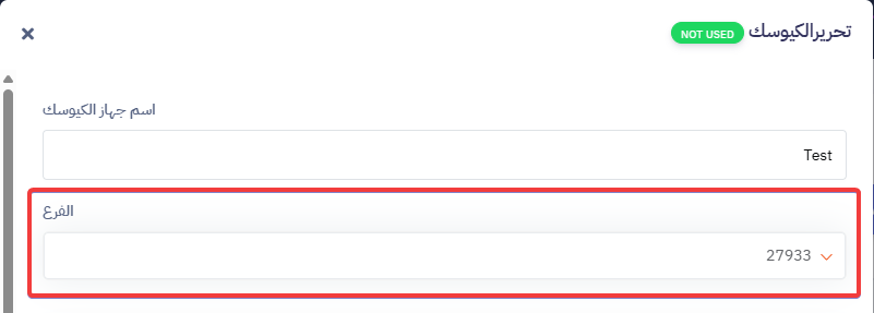 قم بتعيين الفرع المطلوب لهذا المستخدم الجديد — نفس الفرع المخصص لجهاز الكيوسك.
