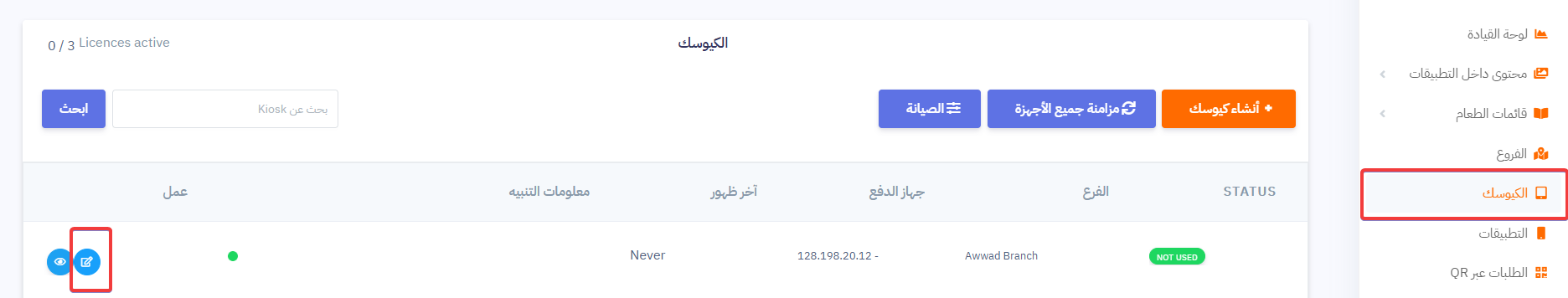 اختر جهاز الكيوسك واضغط على تعديل (Edit).