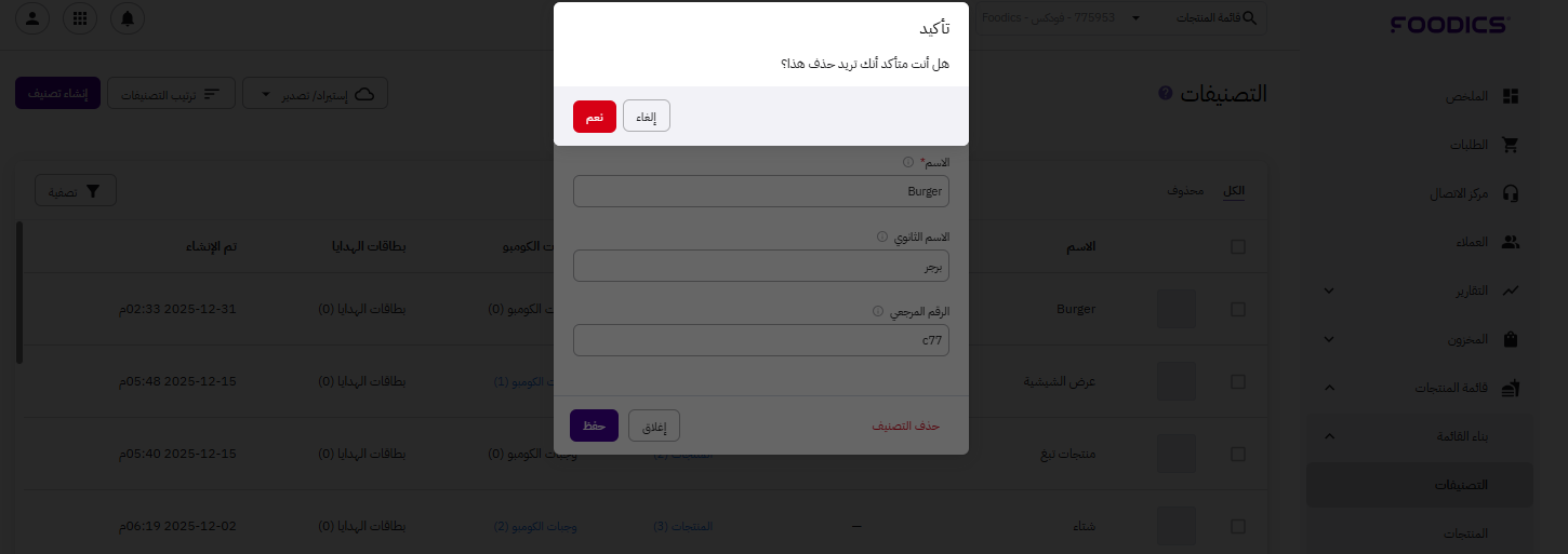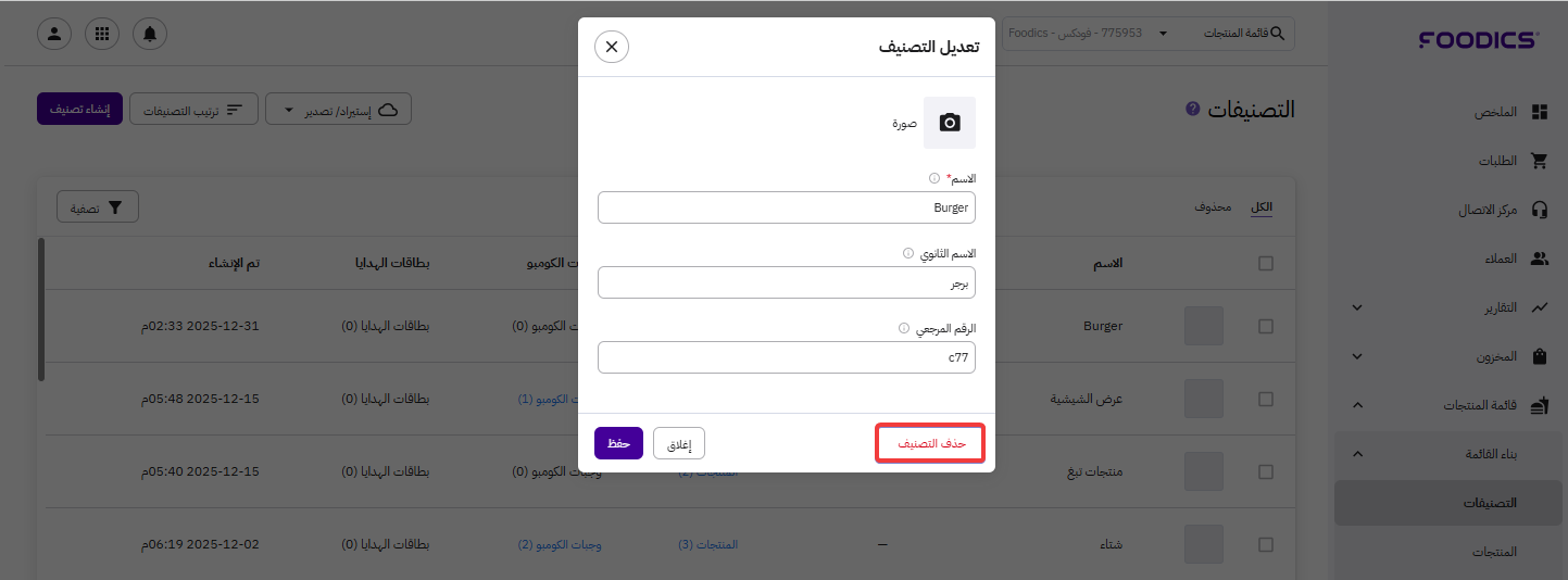 إذا توقّفت عن تقديم صنفٍ معيّن في مطعمك، يمكنك حذفه بسهولة. لكن تأكد أولاً أنّه لا يتضمن أي منتج، كومبو، أو بطاقة هدايا.