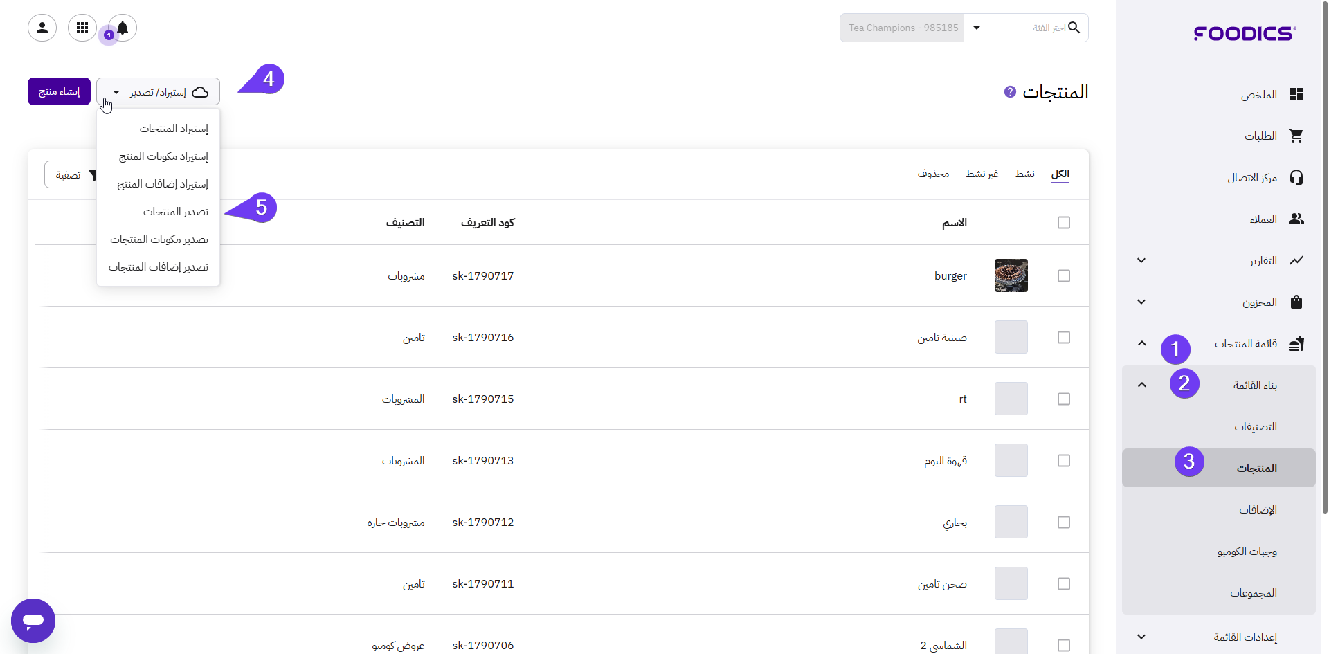 1. انقر على قائمة المنتجات في القائمة الجانبية.