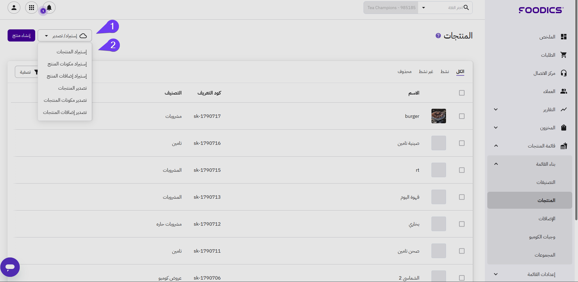 - ID: كود المنتج الخاص بنظام فودكس ولا يمكن تعديله من طرف المستخدم.