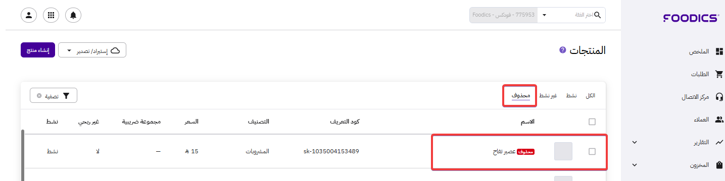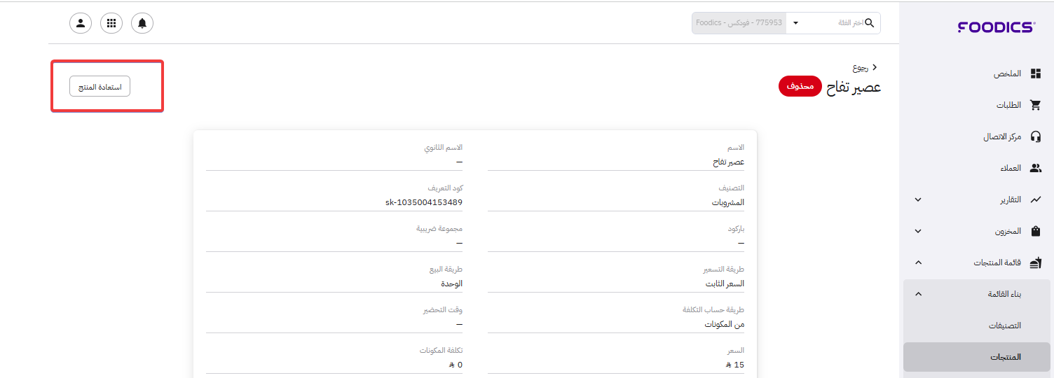 يمكنك استعادة منتج محذوف بسرعة إذا أردت إعادة تقديمه مجدداً لعملائك.