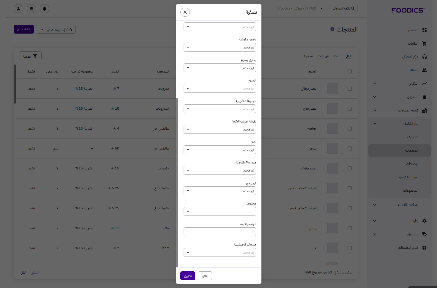 - يحتوي وسوم: ما إذا كان المنتج يحتوي على وسوم مضافة إليه.