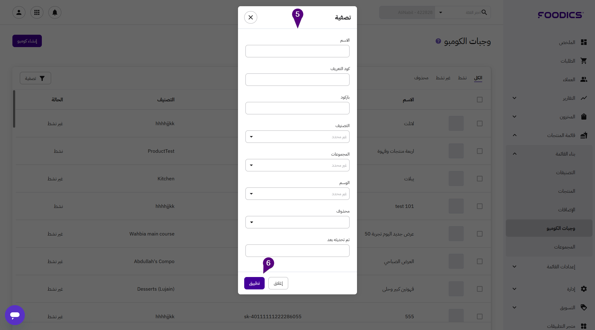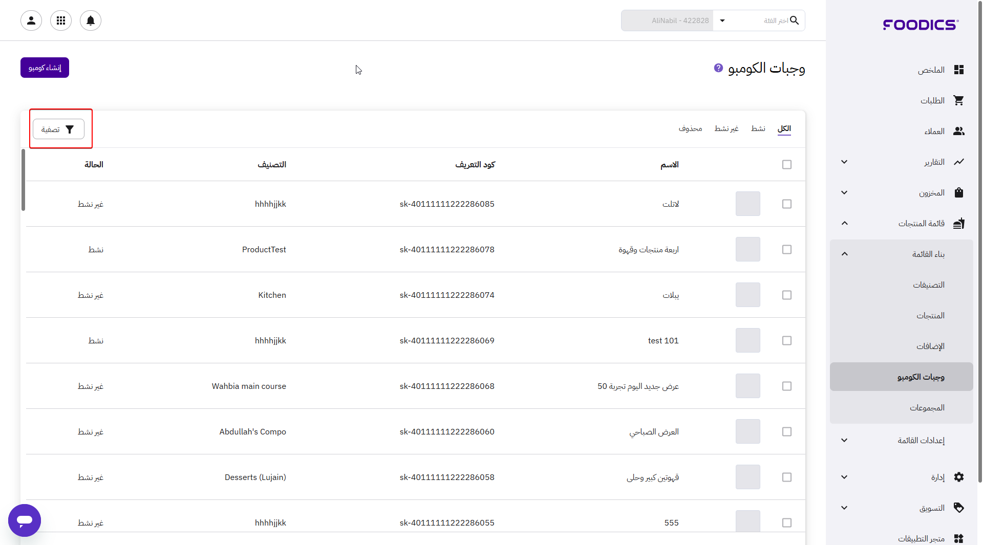 ذا كان لديك الكثير من وجبات الكومبو، فيمكنك تصفيتها بسهولة بناءً على عدة معايير للوصول إلى طلبك وتنفيذ أي إجراءات إضافية تريدها.