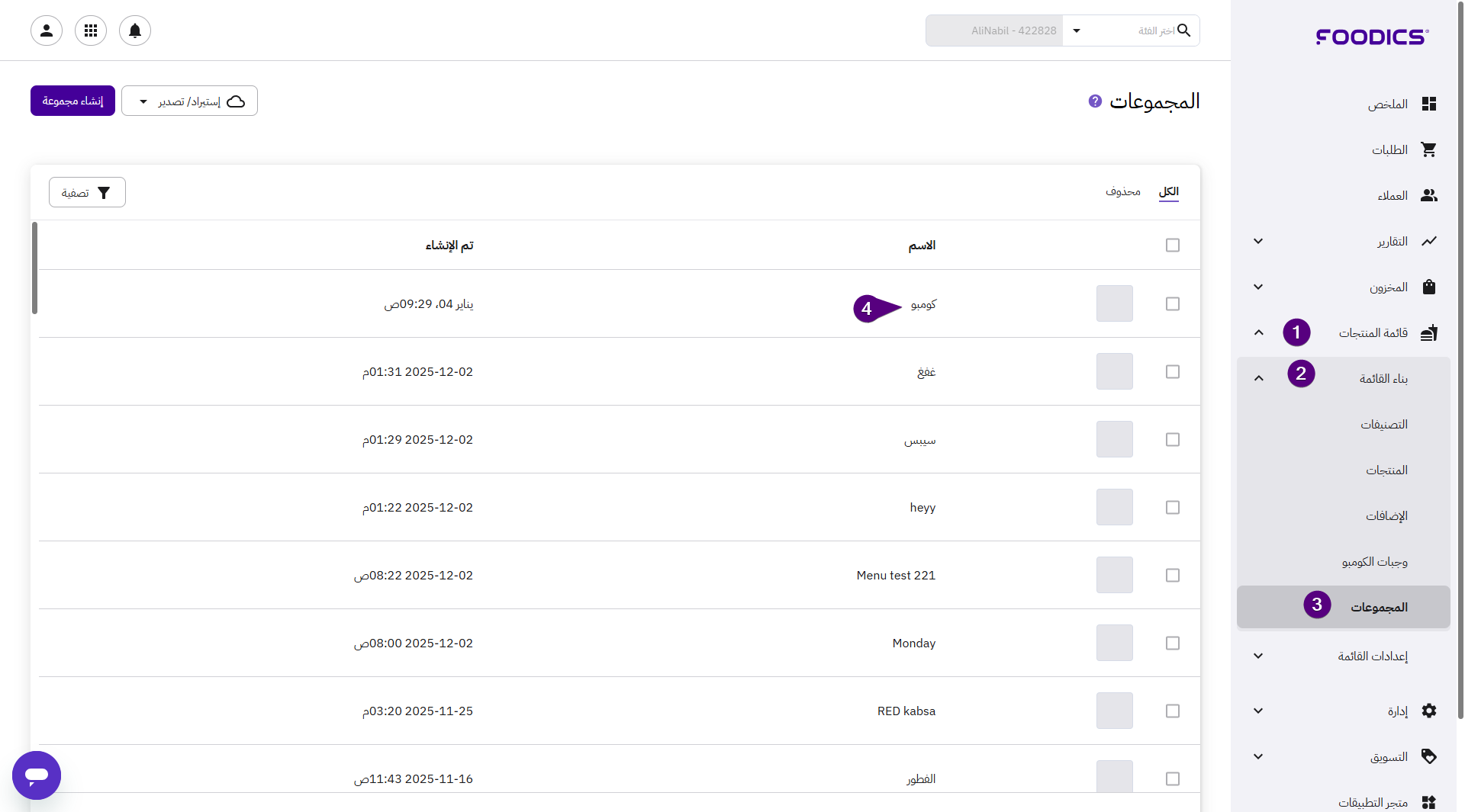 يمكن إضافة منتج إلى مجموعات متعددة، مثل وجبات الفطور أو قائمة التوصيل، لبيعها في الفروع المناسبة.