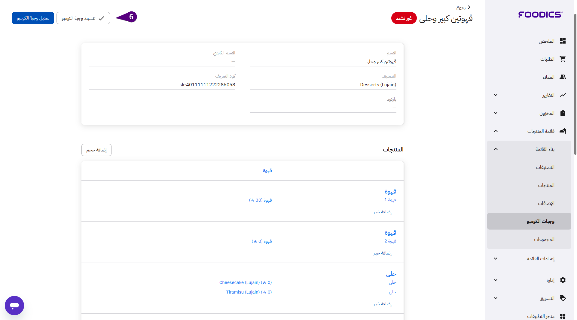 في حال أردت إعادة تنشيط وجبة كومبو غير نشطة، اتبع الخطوات نفسها، وبدلا من الخطوة الأخيرة: