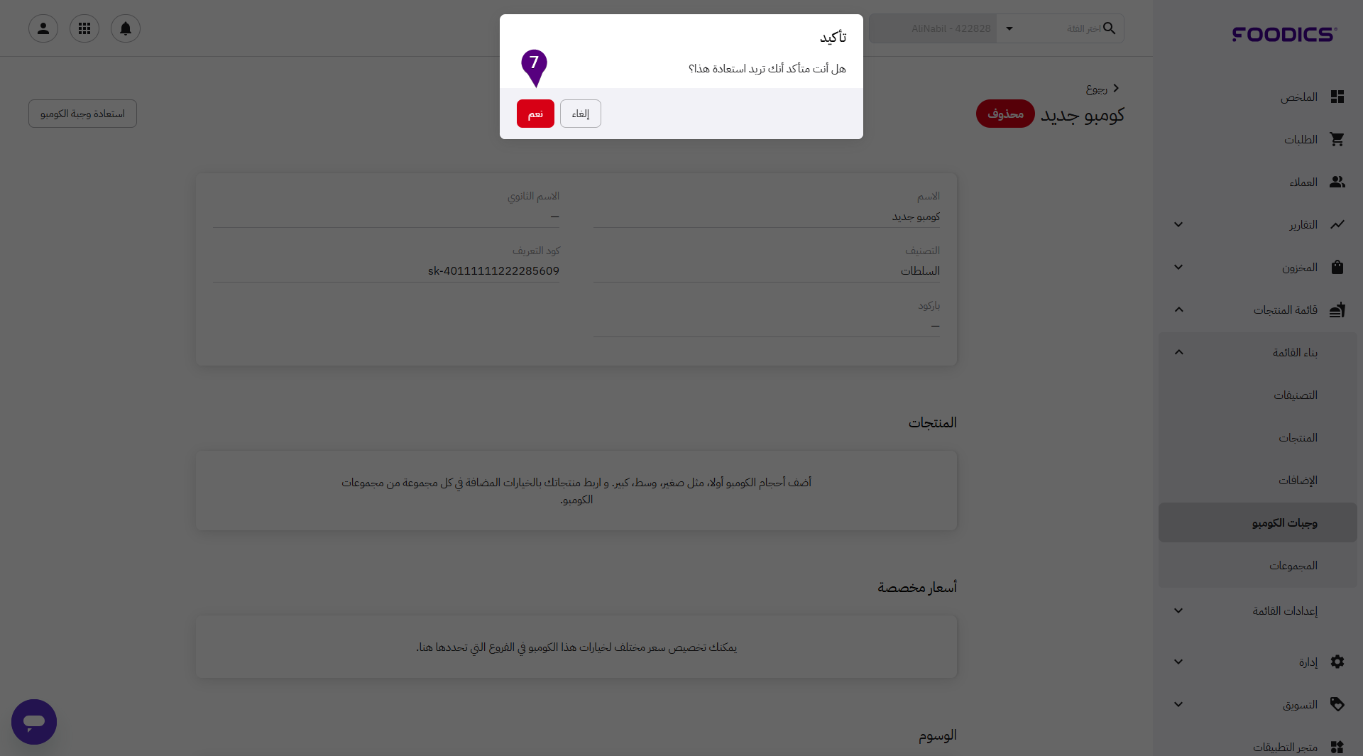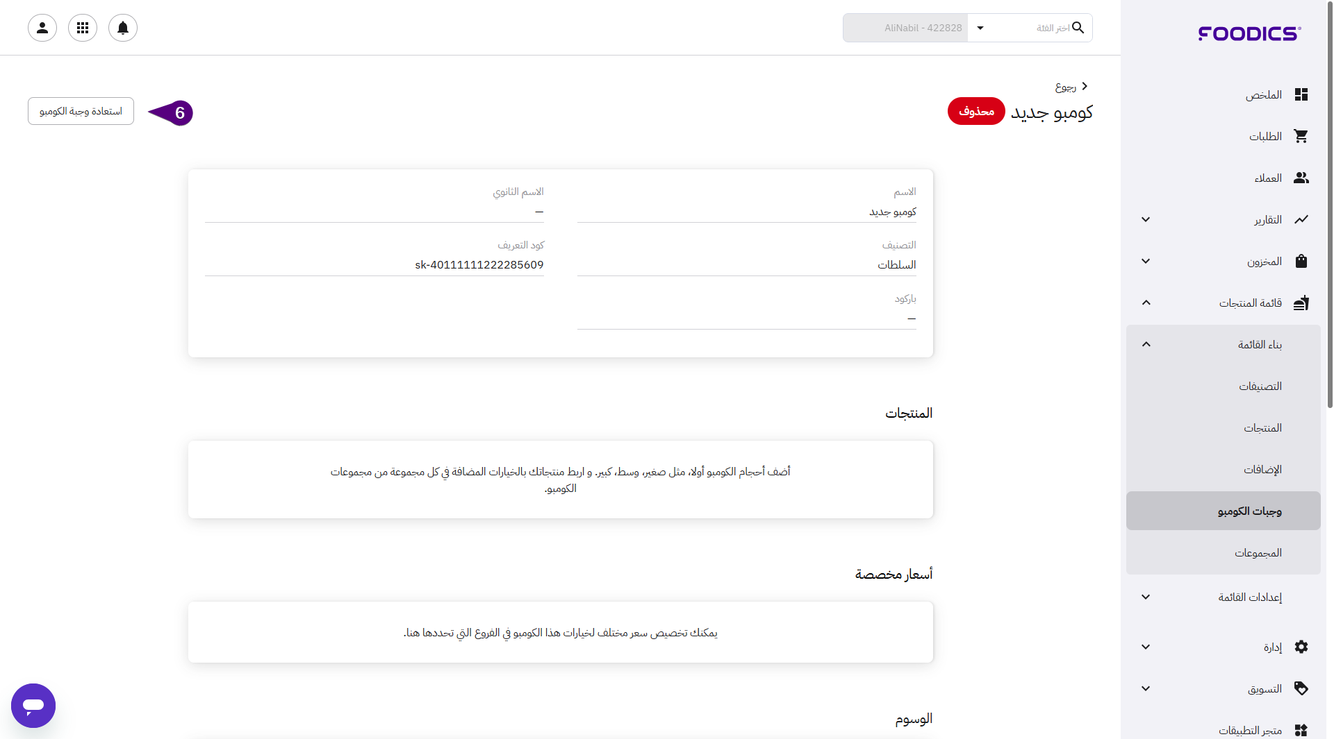 يمكنك استعادة وجبة كومبو محذوفة بسرعة إذا أردت إعادة تقديمها مجدداً لعملائك.