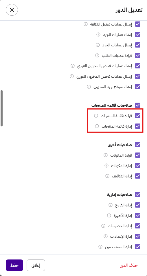 في حال عدم ظهور صفحة الأدوار، يرجى التواصل مع مالك الحساب لتحديث صلاحيات المستخدم.