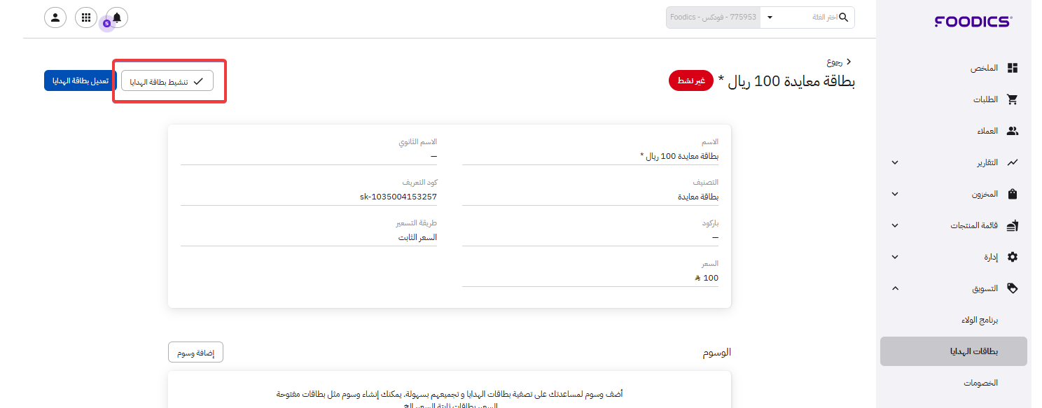 تنشيط وإلغاء تنشيط بطاقات الهدايا