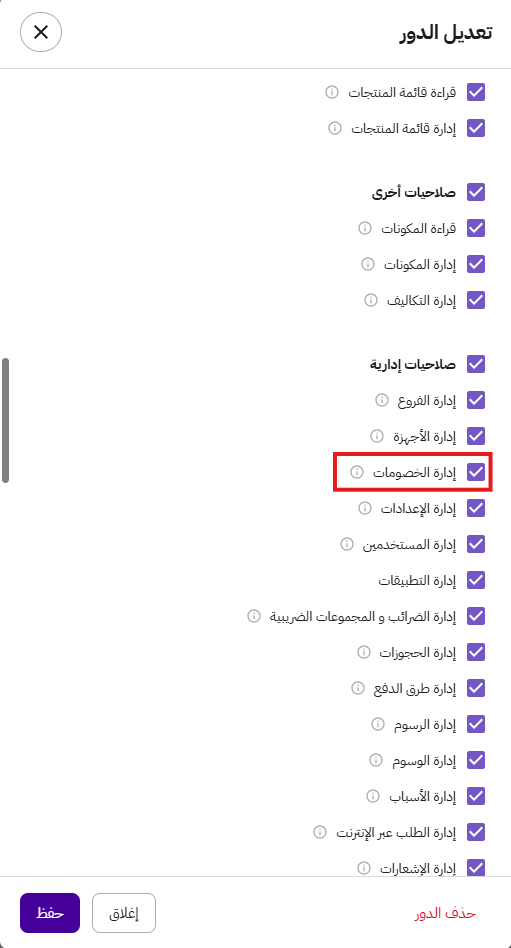 يجب التأكد من أن المستخدم لديه الصلاحيات اللازمة على الكونسول قبل تنفيذ أي خطوات متعلقة بإدارة الخصومات.