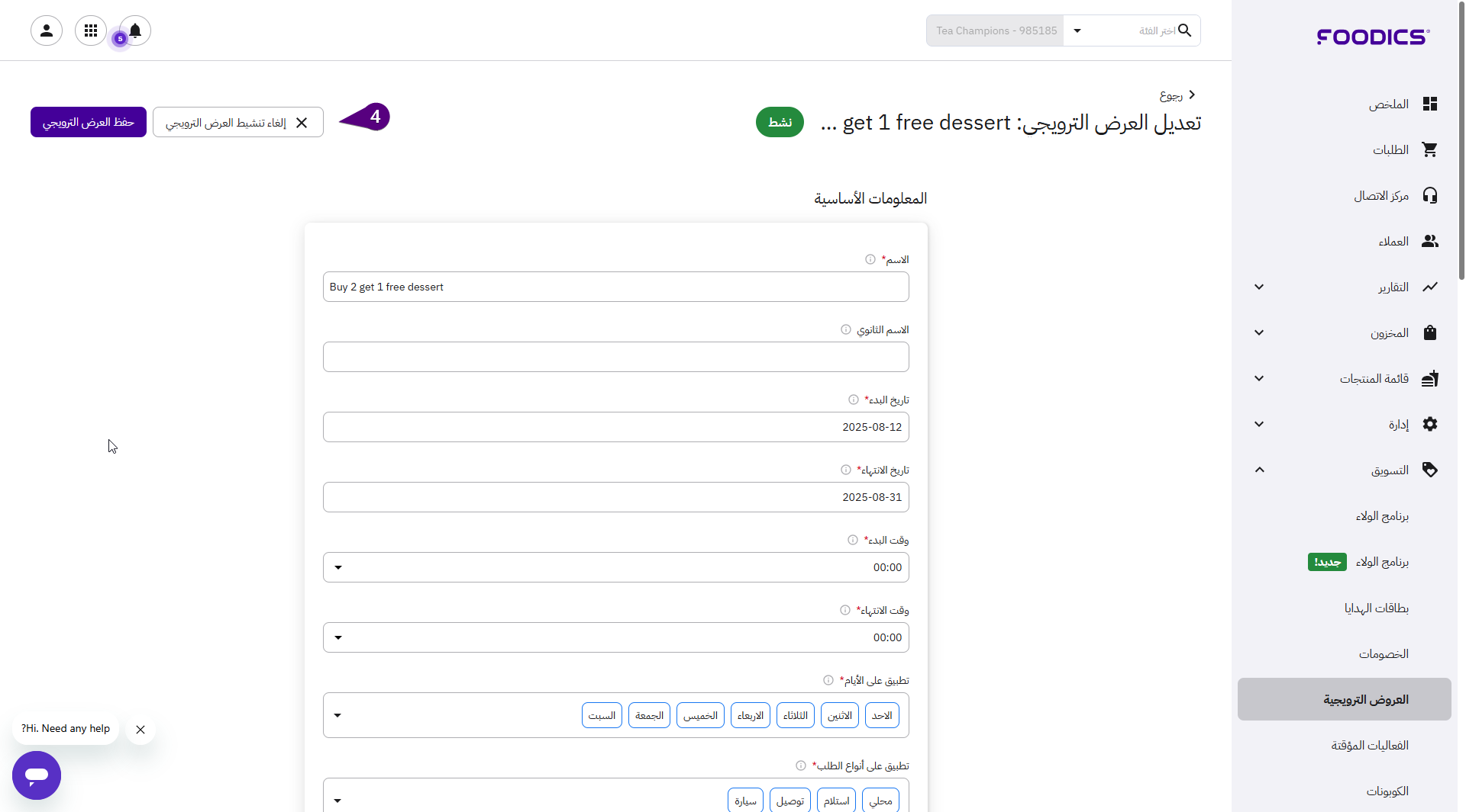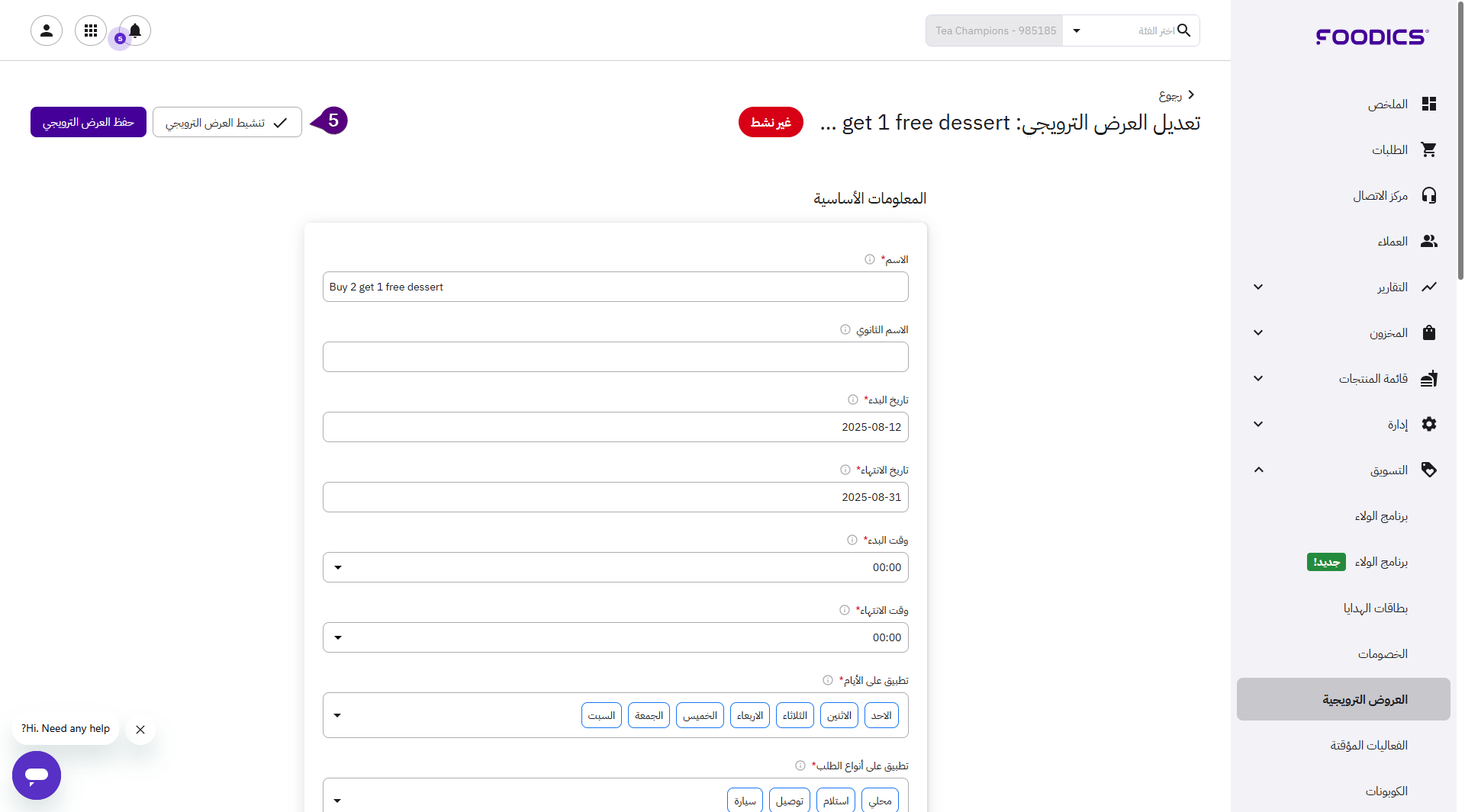 تنشيط وإلغاء تنشيط العروض الترويجية