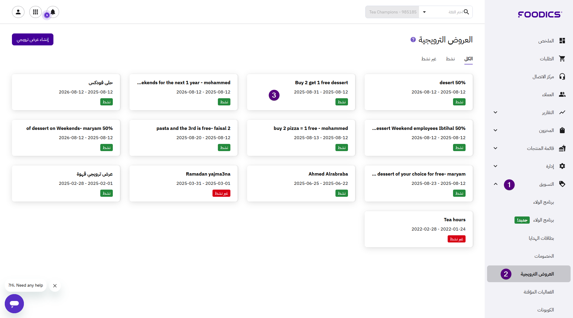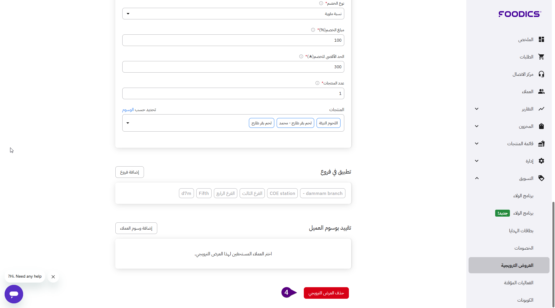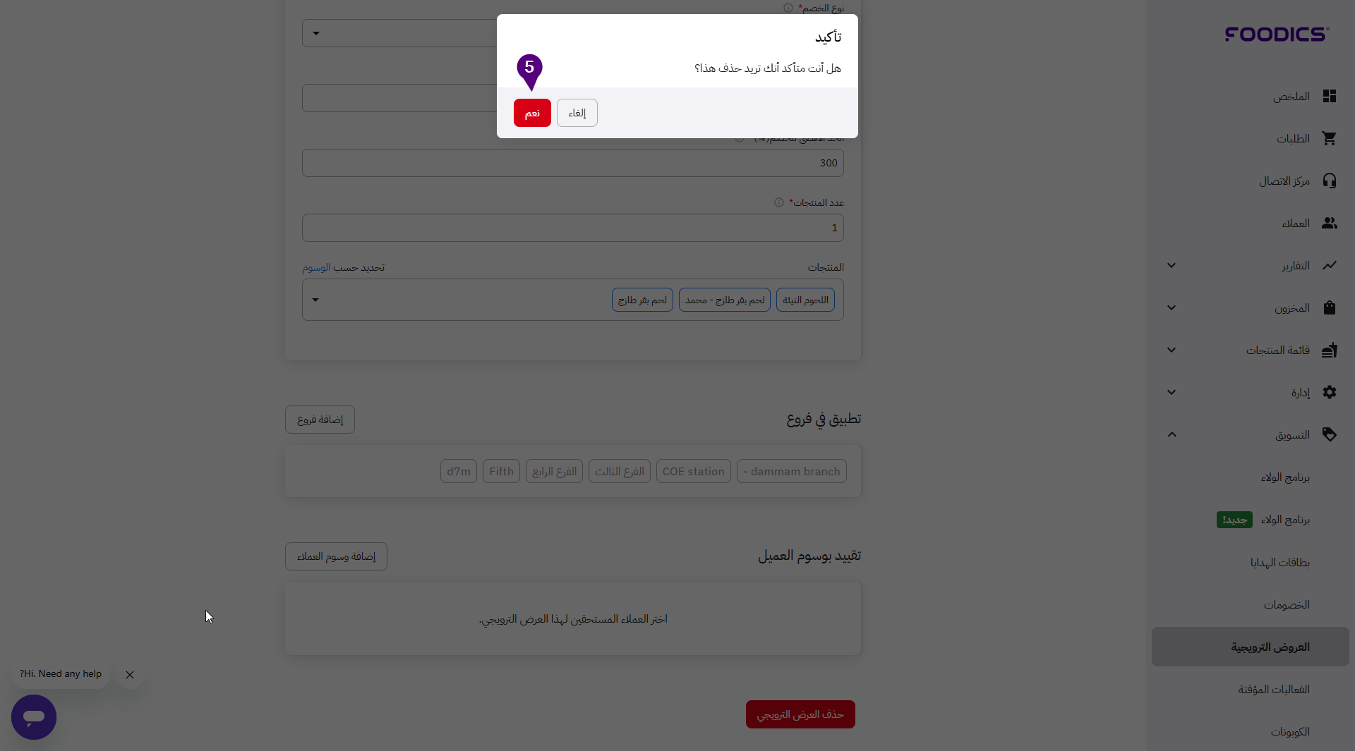 يمكنك حذف أي عرض ترويجي لم تعد تقدمه في مطعمك بسهولة.