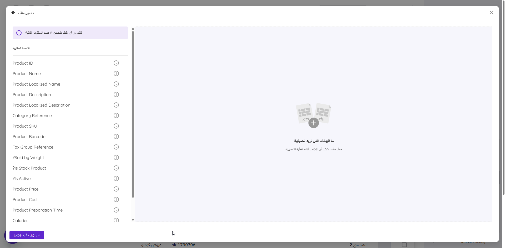 سيتم تحميل ملف CSV إلى حاسوبك، يحتوي على الخانات التّالية: