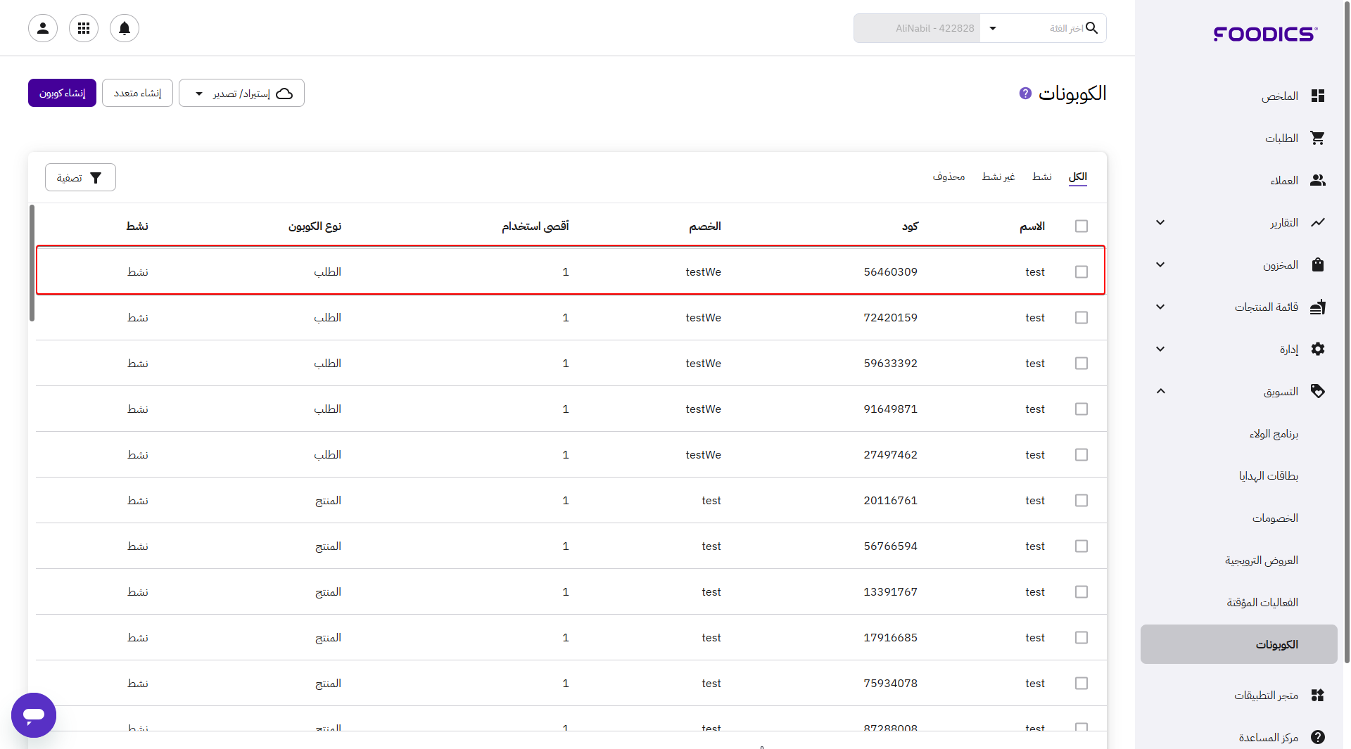 بعد تفعيل هذه الصلاحية، سيظهر قسم الكوبونات، ويمكن إدارة الكوبونات بشكل طبيعي من خلال الكونسول.