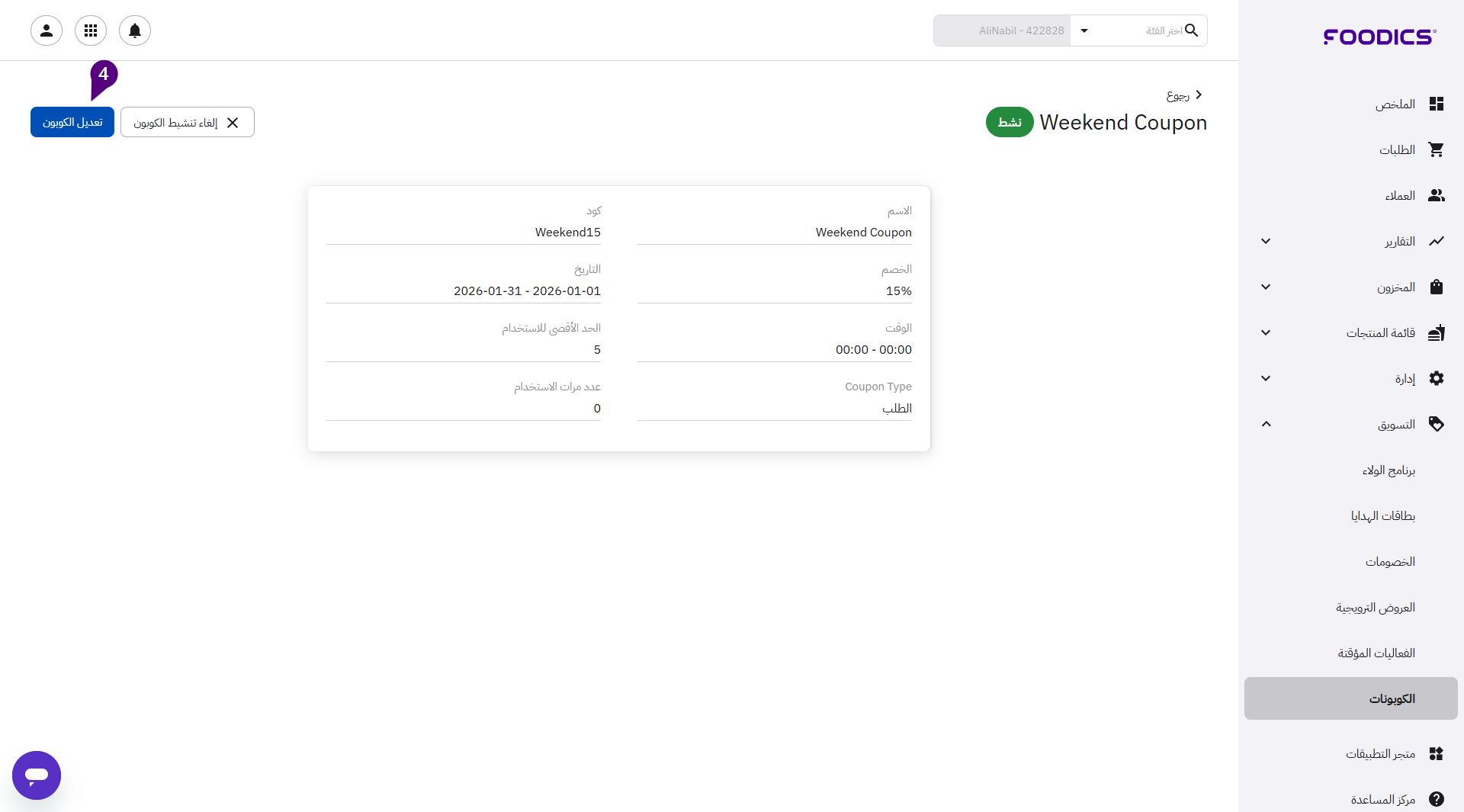 - تاريخ الانتهاء (بند إلزامي): حدد تاريخ انتهاء صلاحية الكوبون.