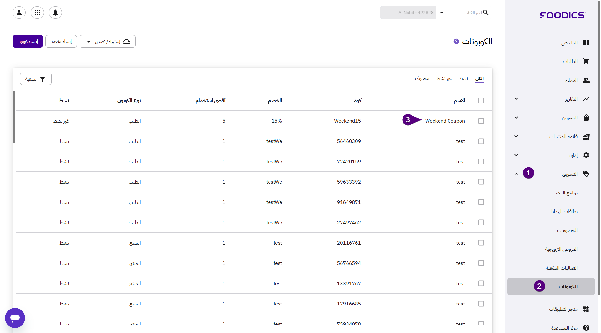 تنشيط وإلغاء تنشيط الكوبونات