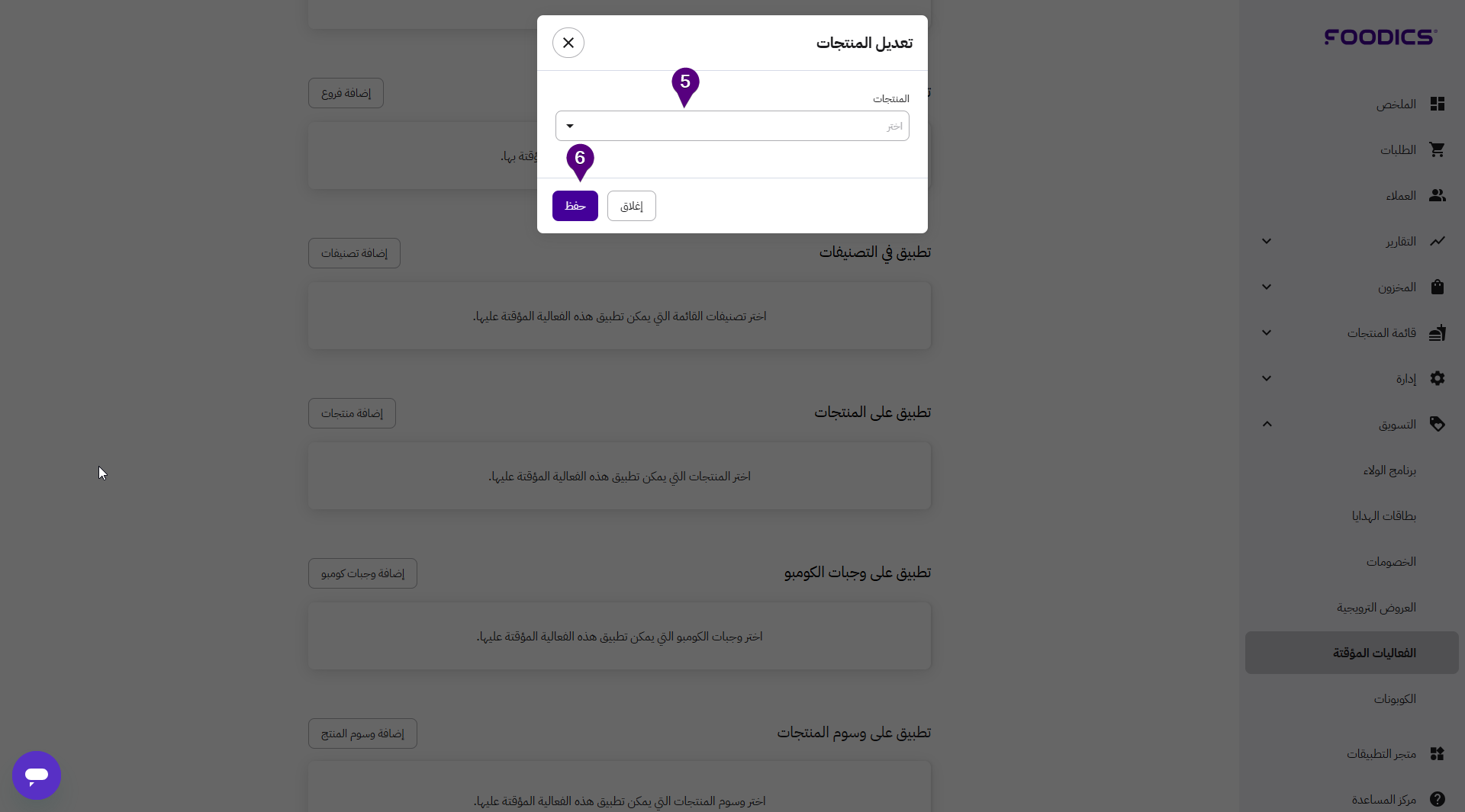 5. ستظهر نافذة حيث يمكنك إضافة المنتجات حيث تريد تطبيق الفعالية المؤقتة.