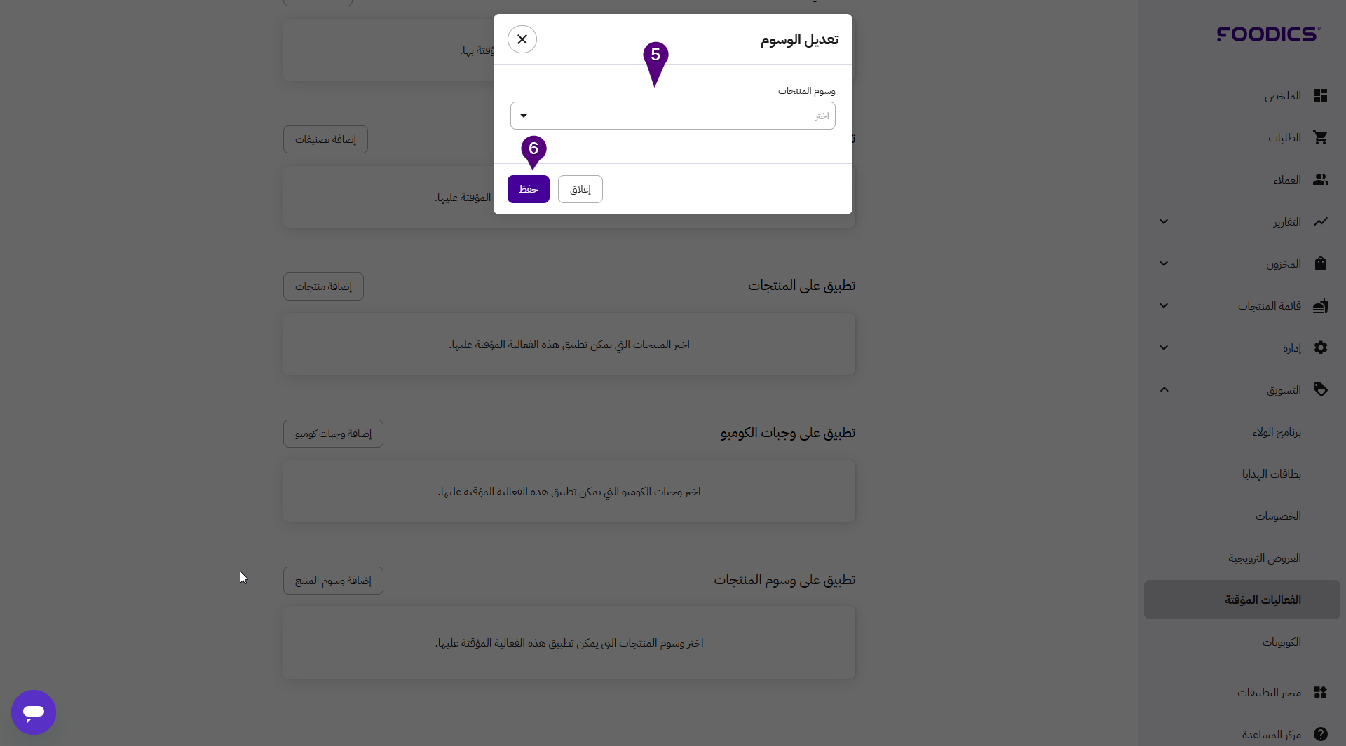 كما يمكنك تعيين الفعاليات المؤقتة النشطة على وسوم المنتجات بحسب خطتك التسويقية.