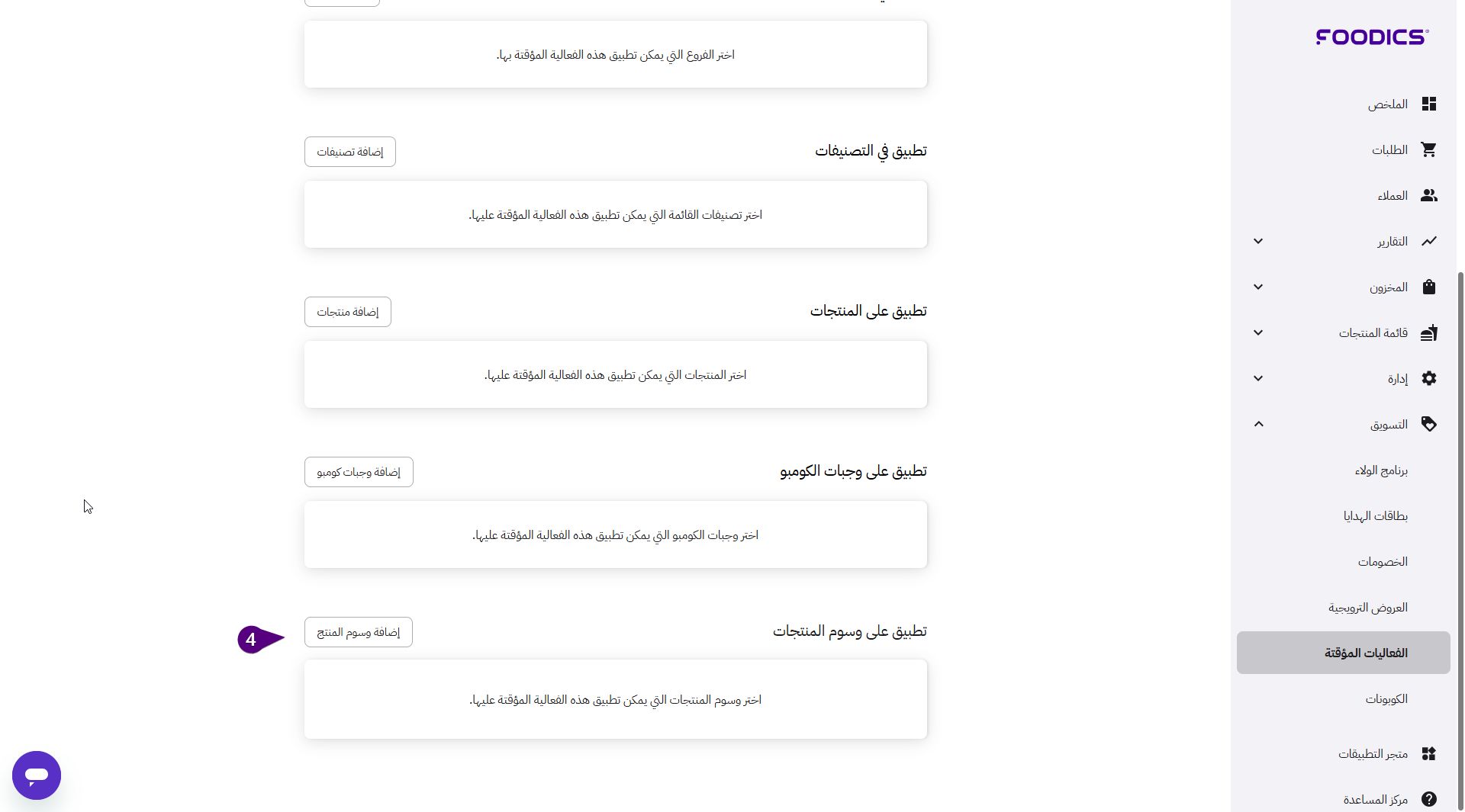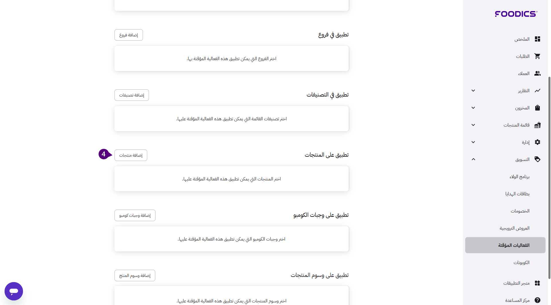 يمكنك تعيين الفعاليات المؤقتة النشطة على مختلف المنتجات بحسب خطتك التسويقية.
