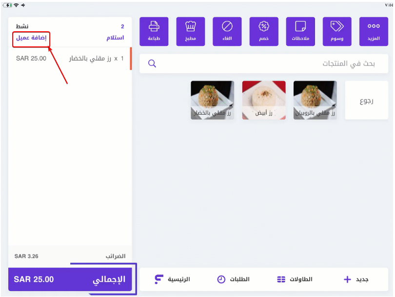 - يضيف العميل بالاسم أو رقم الجوال