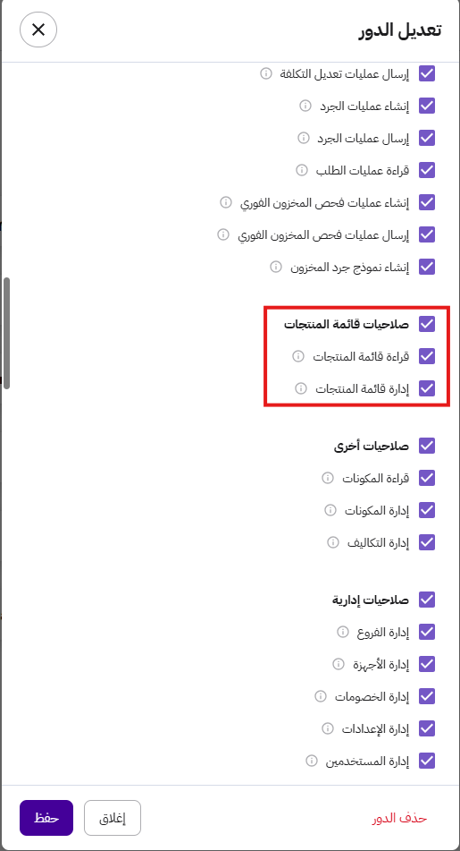 في حال عدم ظهور صفحة الأدوار، يرجى التواصل مع مالك الحساب لتحديث الصلاحيات الخاصة بالمستخدم.