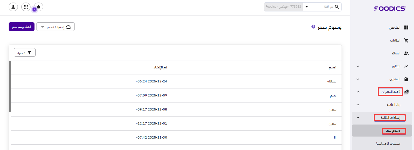 استيراد وسوم الأسعار