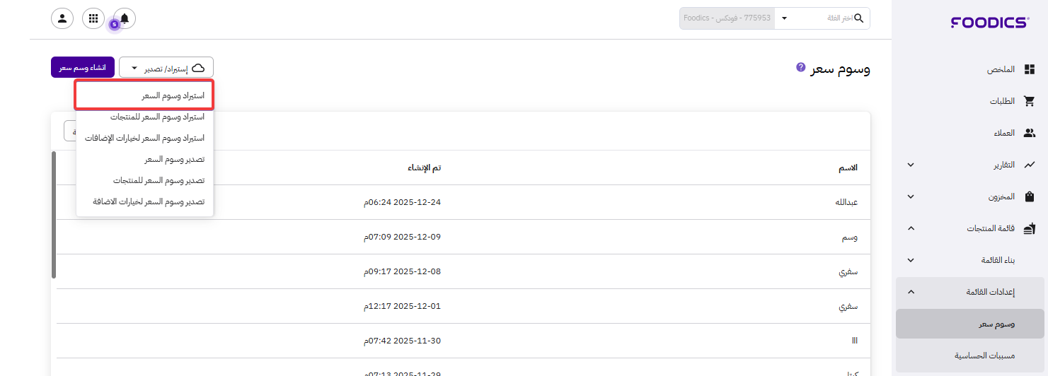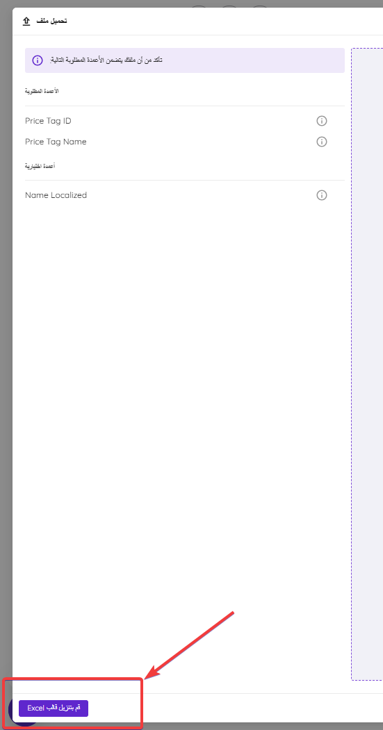 2. اضغط على استيراد وسوم السعر