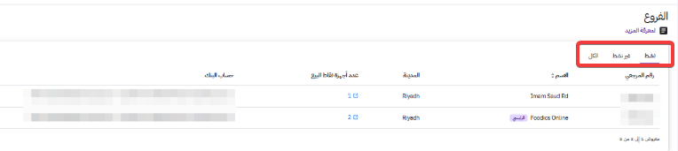 عدد اجهزة نقاط البيع: يشير إلى عدد الأجهزة التي تعمل حاليًا في كل فرع.