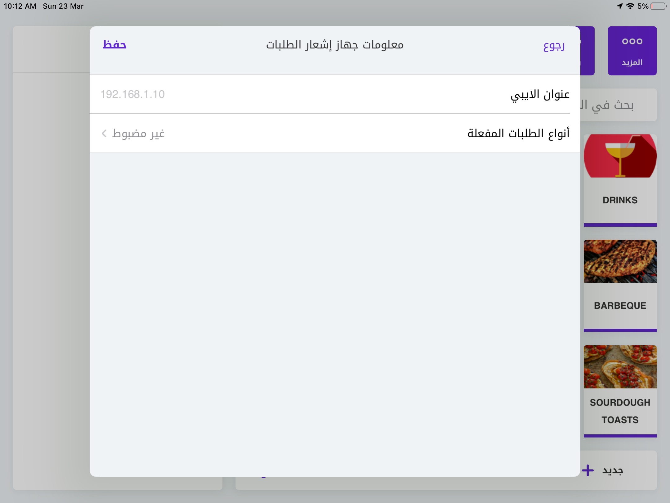 4. أدخل عنوان الآي بي الخاص بجهاز إشعار الطلبات.
