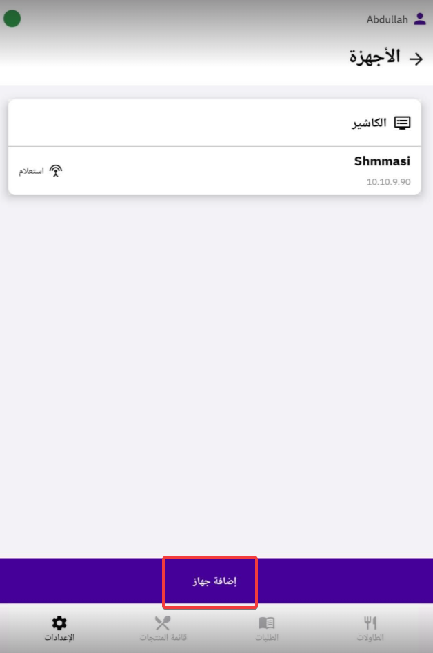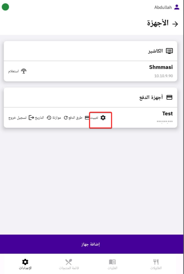 5- اضغط على "إضافة جهاز" ثم "إضافة جهاز دفع"