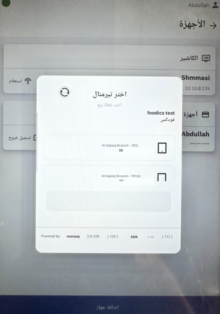 9- اختر جهاز NearPay الذي ترغب في تفعيله.