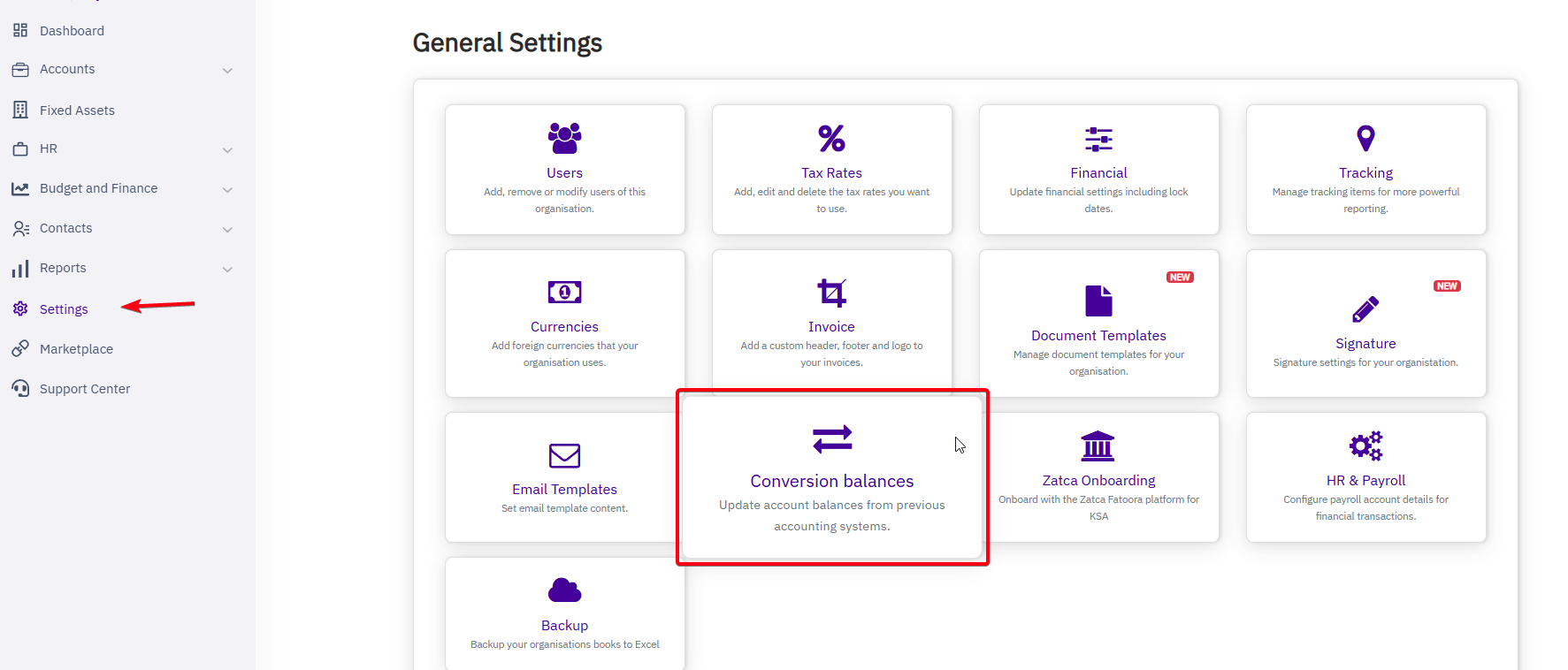 - Go to Settings > Conversion Balance