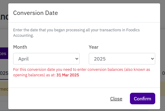 Opening (conversion) Balance Setup in Foodics Accounting